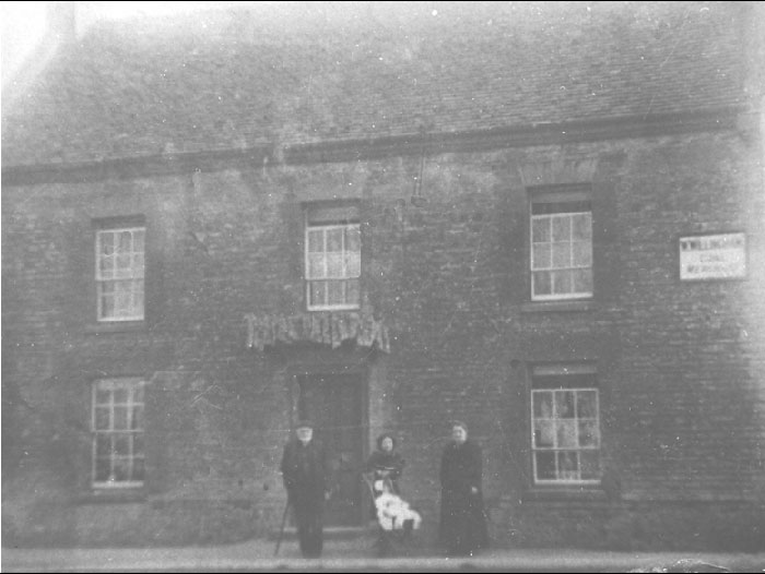 The New Inn at the turn of the century.Onthe wall is an advertisment for Willinghams coal.