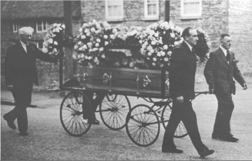 Stan Platten was the village photographer.This is his funeral passing down the High Street, from his home to the church.