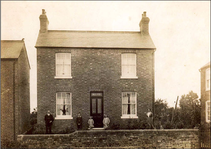 The Gregory family outside Hillside ( now Hartwell Road ) The house was built in 1914 L - R Frederick Henry Gregory, Arthur Henry Gregory, Evelyn May Gregory, Elsie Florence Gregory, Eliza May Gregory The building just visible on the right edge of the photograph is Redcot. |