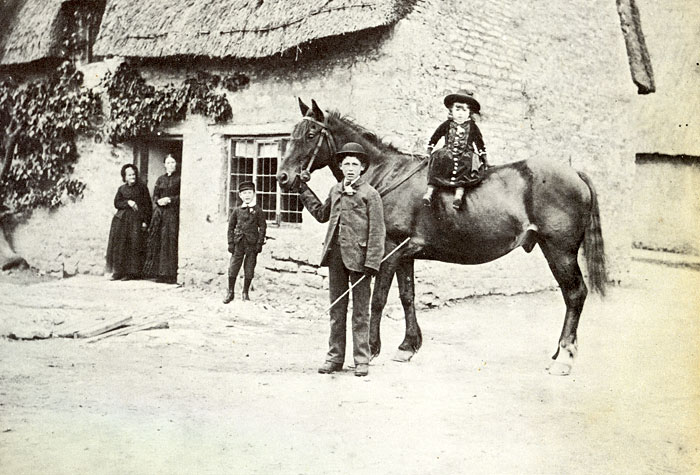 Stephen Webb is holding the horse. He was around 22 when this photograph was taken. The cottage is No.4 The Green. The identity of the other people in the photograph is not known. The 1881 census shows Stephen living in this cottage with his father and mother, John and Mary; his sisters, Phoebe and Lizzie; and his nephew Frederick Eakins. |