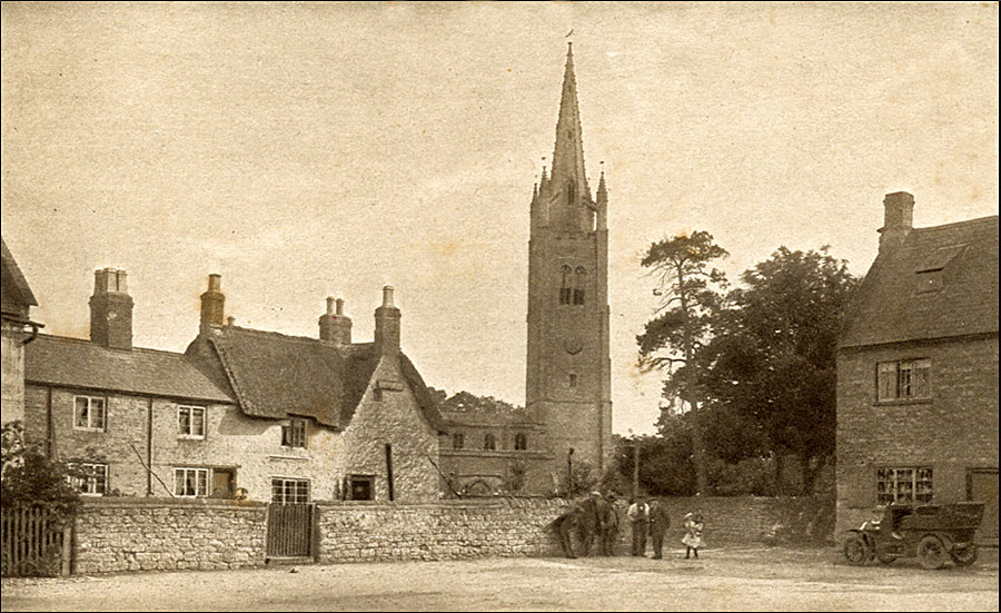 St James the Great, Hanslope, from the Market Square. The Church dates from the 12th century. Its impressive tower, the highest in Buckinghamshire, was added in the 15th century when Hanslope was one of the wealthiest villages in the county and part of the estates of the great Earls of Warwick. On the right is Stafford House, thought to be of medieval origin and named for Sir Robert and Lady Jane Stafford who were buried in the church in the 16th century. During the 18th - 19th centuries it was the workhouse.